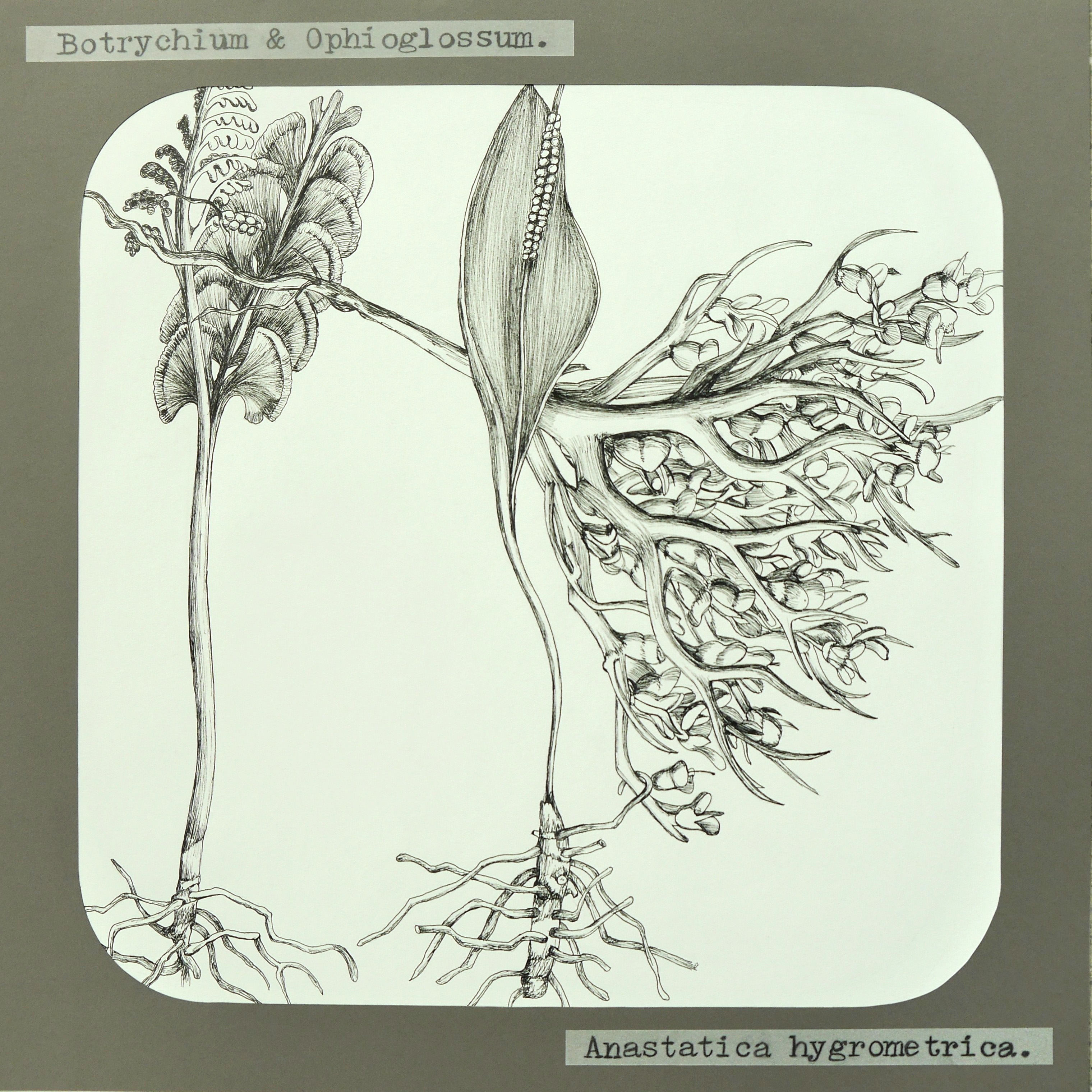 Alte botanischen Dias "geklont", vergrössert und mit Fineliner von Hand gezeichnet.
